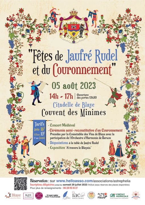 Évènement public, les intéressés peuvent s’inscrire ici : Fête de Jaufré Rudel et du Couronnement